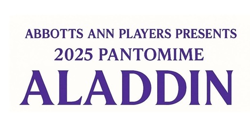АВBOТTS ANN PLAYERS Presents 2025 Pantomime ALADDIN By Keith Saunders in Abbotts Ann Players 2 weeks ago 1 min to read АВBOТTS ANN PLAYERS PRESENTS 2025 PANTOMIME ALADDIN WRITTEN BY TIM ABRAM АBBОТTS ANN MEMORIAL HALL FRIDAY 5TH DEC 7PM SATURDAY 6TH DEC 2.30PM & 7PM SUNDAY 7TH DEC 4PM ADULT TICKEТ £9 CHILD TICKET (UNDER 16) £5 TICKETS AVAILABLE FROM ABBOTTS ANN SHOP AND THE ANDOVER TAP Keith Saunders