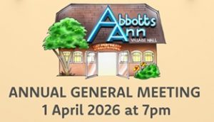 The Annual General Meeting of the Abbotts Ann War Memorial Hall Charity will take place on Wednesday 1st April 2026 at 7pm. Last year the hall trustees and committee decided to move the AGM from its normal date in January to April when normally we have lighter evenings. Complimentary drinks and snacks will be provided …